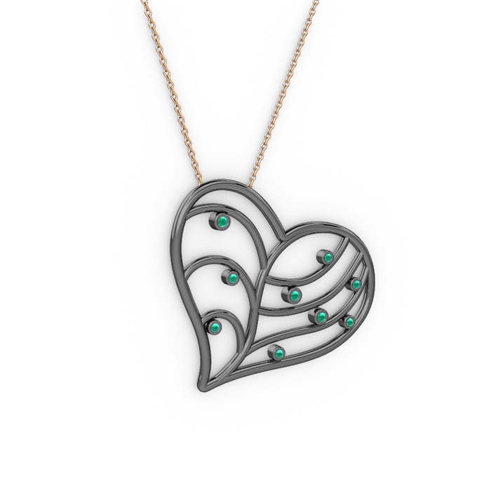 Kök zümrüt 925 ayar siyah rodyum kaplama gümüş kolye (40 cm rose altın rolo zincir)