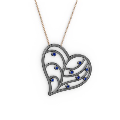 Lab safir 925 ayar siyah rodyum kaplama gümüş kolye (40 cm rose altın rolo zincir)
