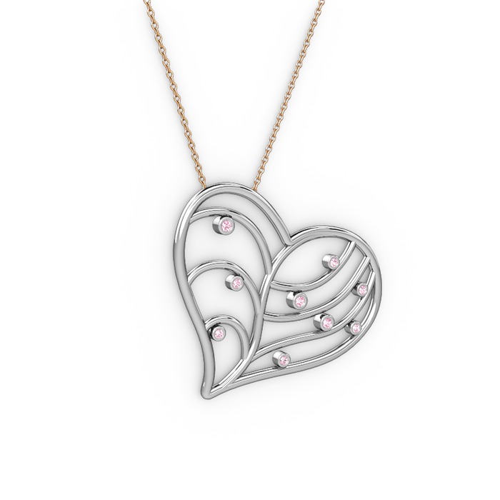 Pembe kuvars 8 ayar beyaz altın kolye (40 cm rose altın rolo zincir)