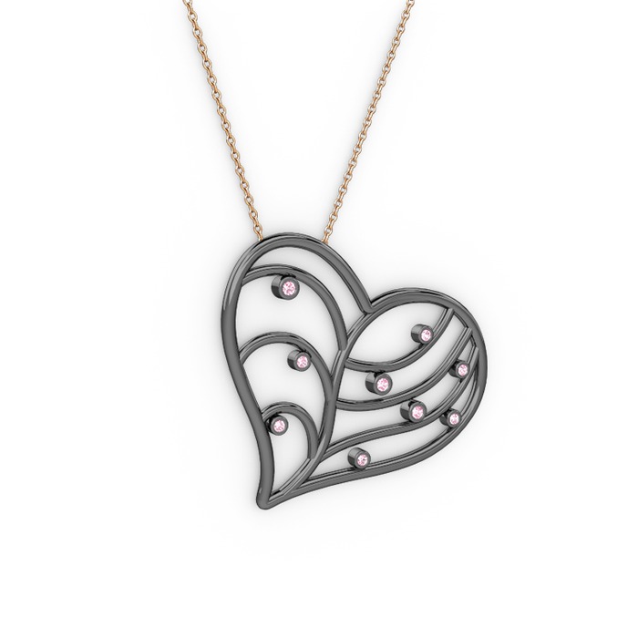 Pembe kuvars 925 ayar siyah rodyum kaplama gümüş kolye (40 cm gümüş rolo zincir)