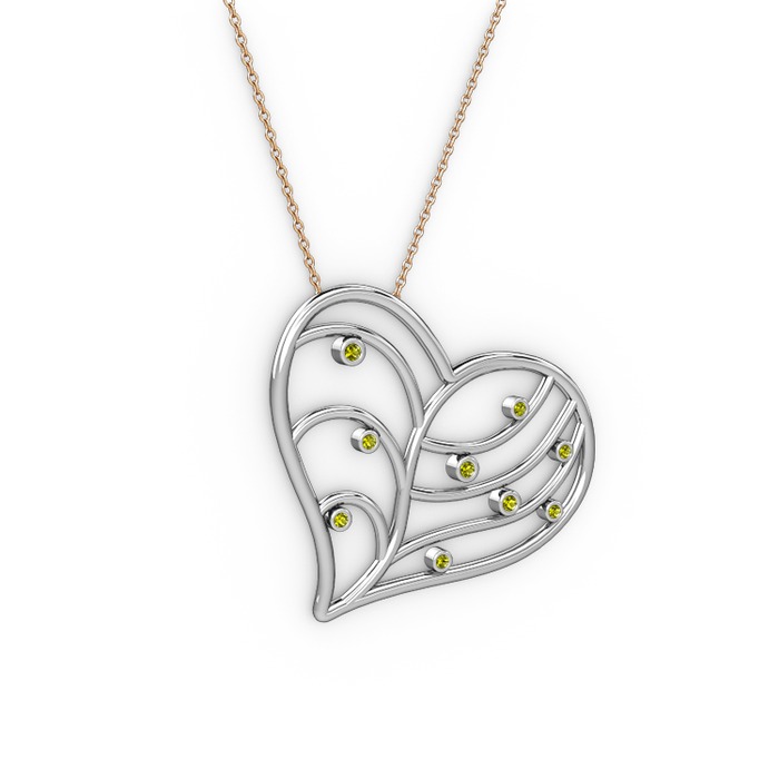 Peridot 8 ayar beyaz altın kolye (40 cm rose altın rolo zincir)