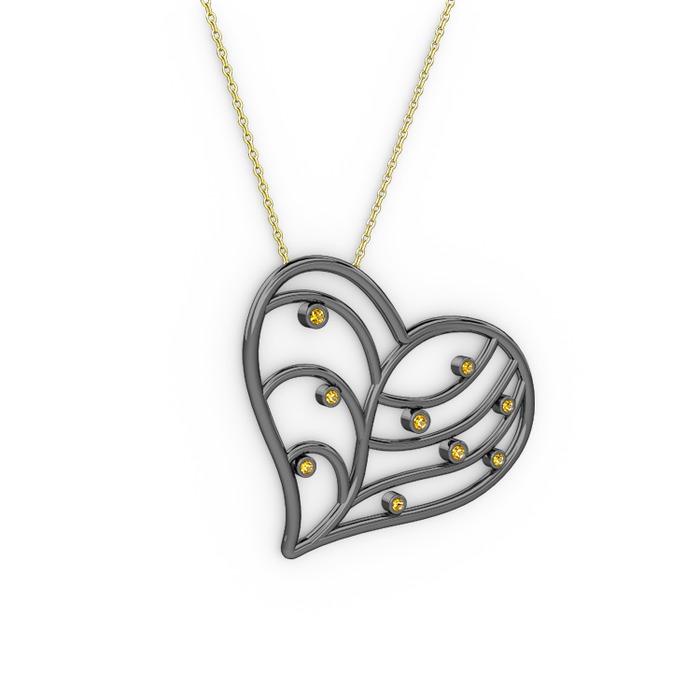 Sitrin 925 ayar siyah rodyum kaplama gümüş kolye (40 cm altın rolo zincir)
