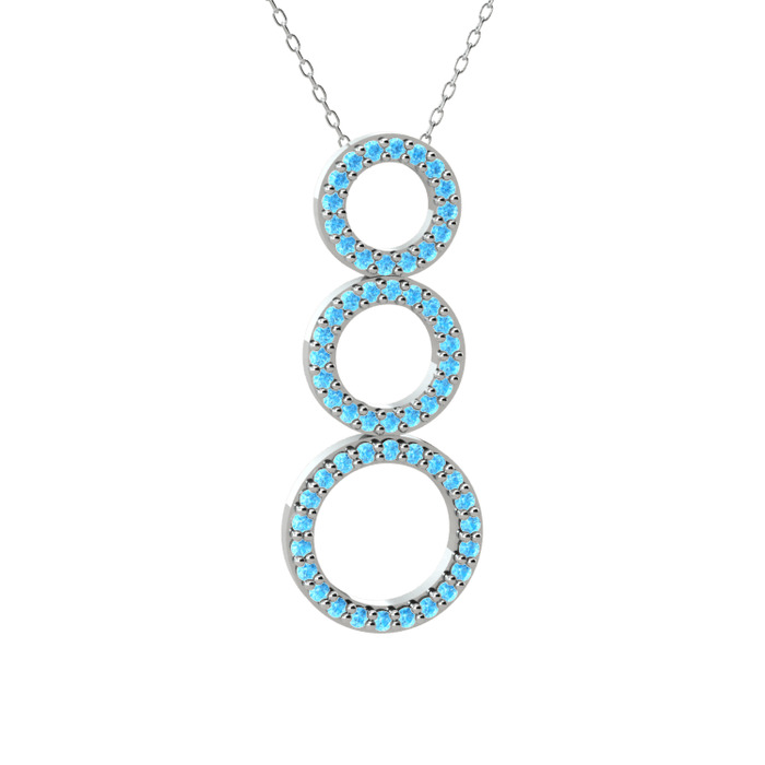 Akuamarin 18 ayar beyaz altın kolye (40 cm gümüş rolo zincir)