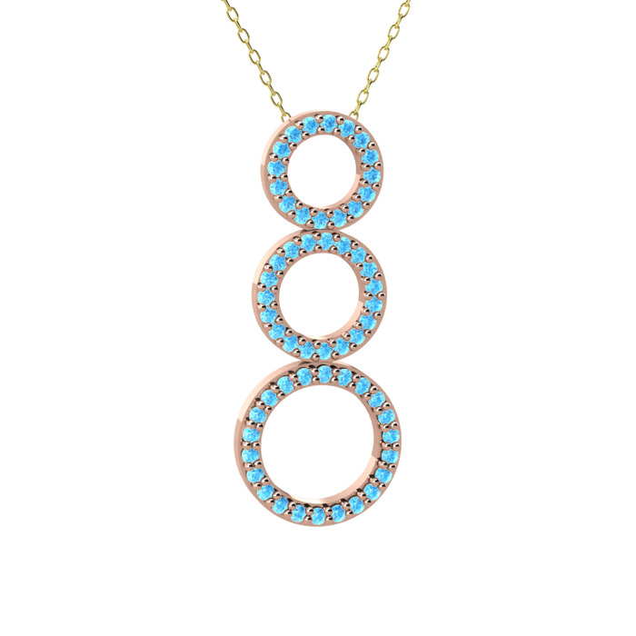 Akuamarin 925 ayar rose altın kaplama gümüş kolye (40 cm gümüş rolo zincir)