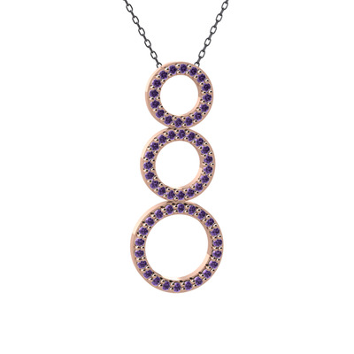 Ametist 18 ayar rose altın kolye (40 cm gümüş rolo zincir)