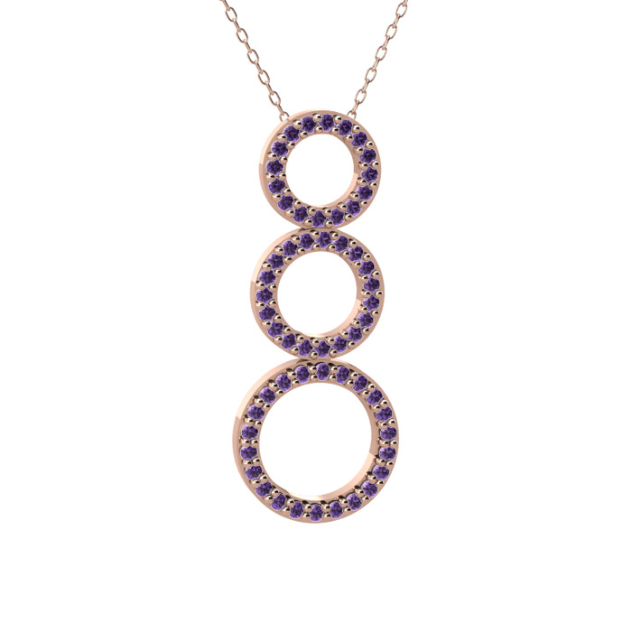 Ametist 18 ayar rose altın kolye (40 cm gümüş rolo zincir)