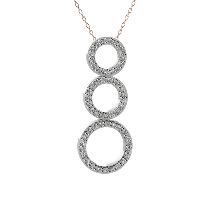 Beyaz zirkon 925 ayar gümüş kolye (40 cm rose altın rolo zincir)