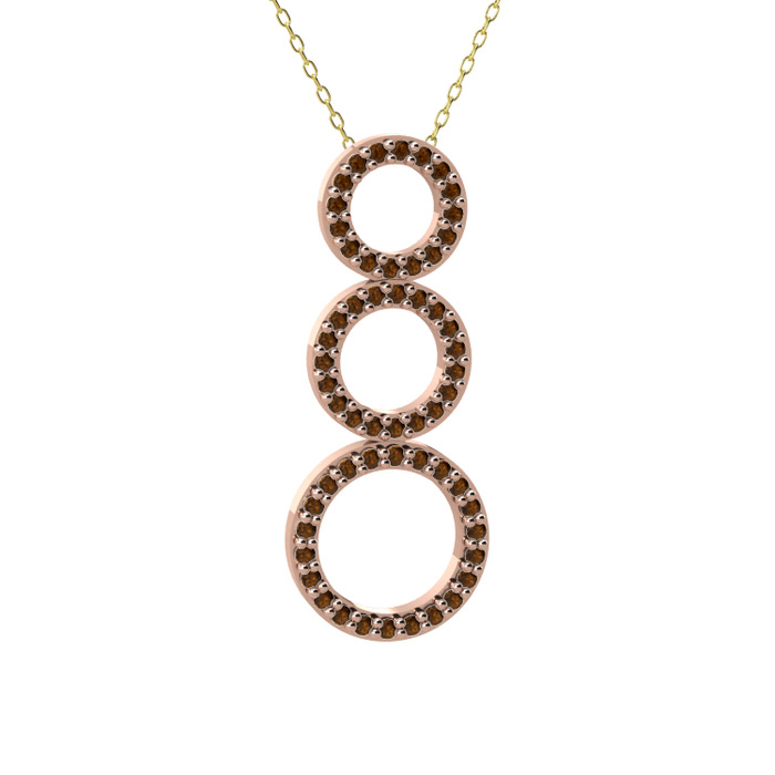 Dumanlı kuvars 8 ayar rose altın kolye (40 cm gümüş rolo zincir)