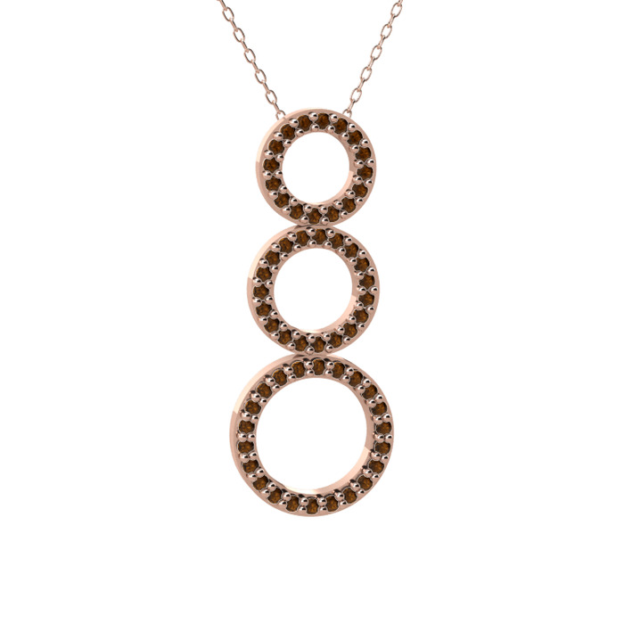 Dumanlı kuvars 925 ayar rose altın kaplama gümüş kolye (40 cm rose altın rolo zincir)