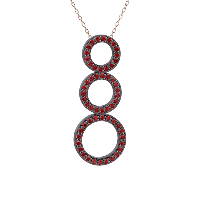 Garnet 925 ayar siyah rodyum kaplama gümüş kolye (40 cm rose altın rolo zincir)
