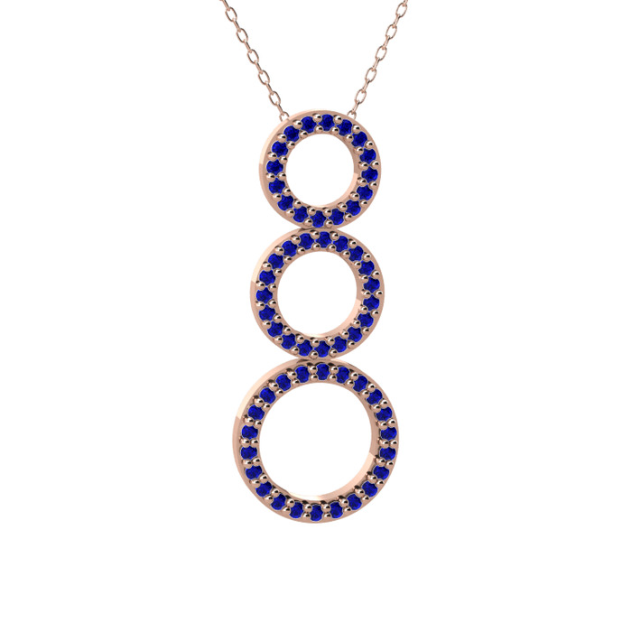 Lab safir 18 ayar rose altın kolye (40 cm rose altın rolo zincir)