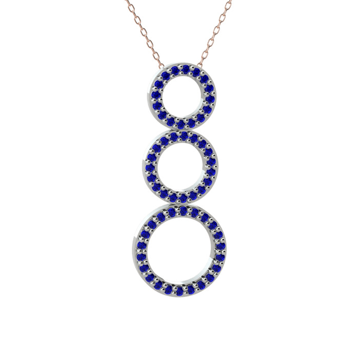 Lab safir 8 ayar beyaz altın kolye (40 cm rose altın rolo zincir)