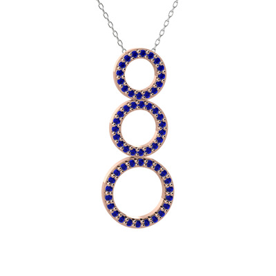 Lab safir 8 ayar rose altın kolye (40 cm gümüş rolo zincir)