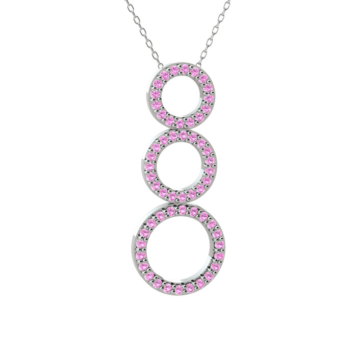 Pembe kuvars 18 ayar beyaz altın kolye (40 cm beyaz altın rolo zincir)