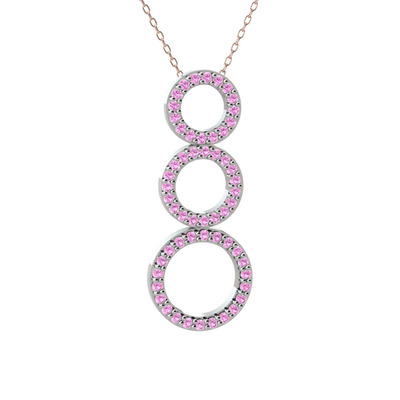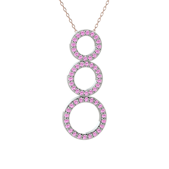 Pembe kuvars 8 ayar beyaz altın kolye (40 cm rose altın rolo zincir)