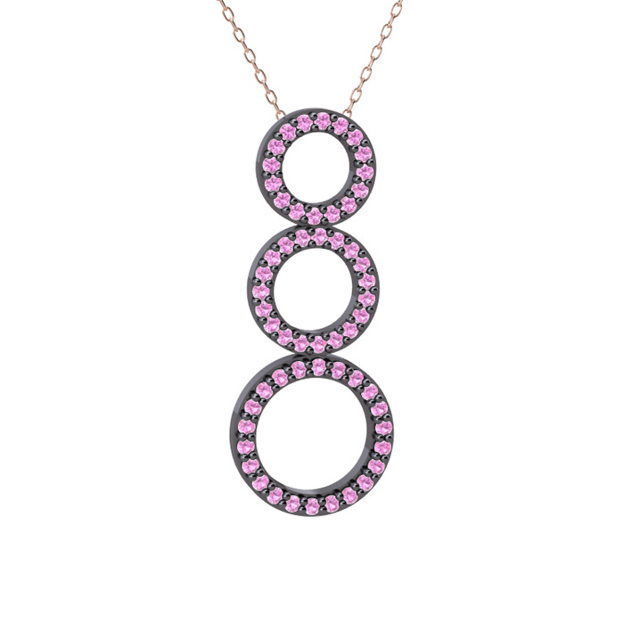 Pembe kuvars 925 ayar siyah rodyum kaplama gümüş kolye (40 cm rose altın rolo zincir)