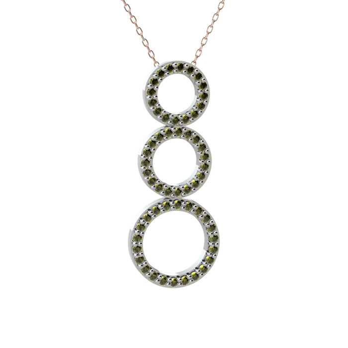 Peridot 18 ayar beyaz altın kolye (40 cm rose altın rolo zincir)