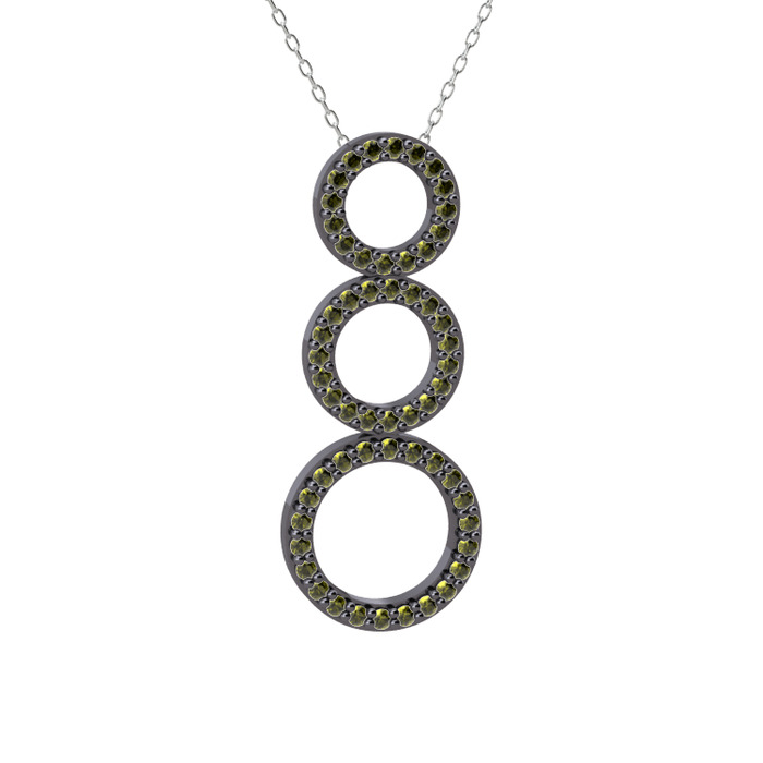 Peridot 925 ayar siyah rodyum kaplama gümüş kolye (40 cm gümüş rolo zincir)
