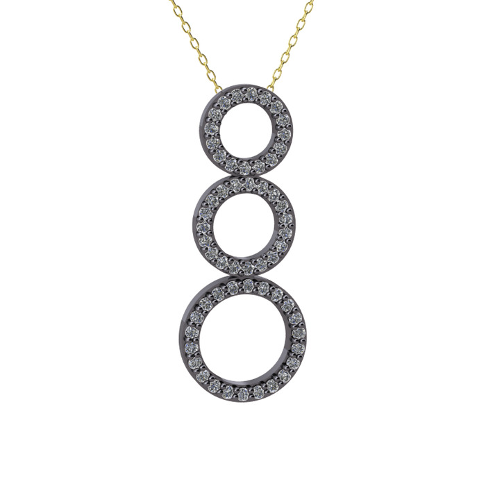 Pırlanta 925 ayar siyah rodyum kaplama gümüş kolye (0.5016 karat, 40 cm gümüş rolo zincir)