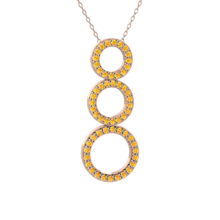 Sitrin 14 ayar rose altın kolye (40 cm rose altın rolo zincir)