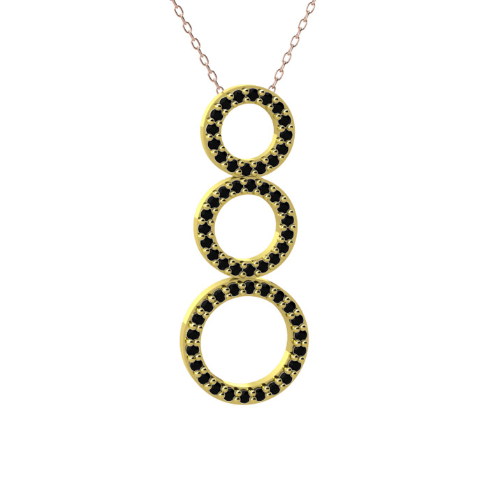 Siyah zirkon 14 ayar altın kolye (40 cm rose altın rolo zincir)