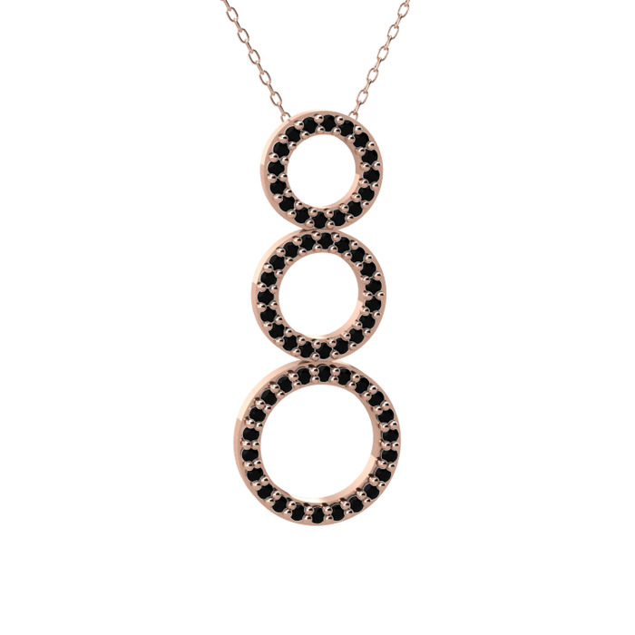 Siyah zirkon 925 ayar rose altın kaplama gümüş kolye (40 cm gümüş rolo zincir)