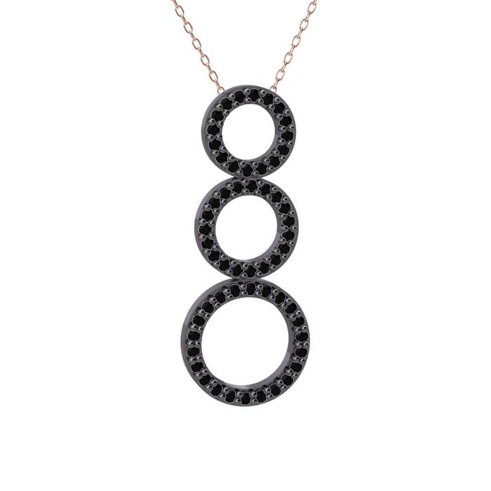Siyah zirkon 925 ayar siyah rodyum kaplama gümüş kolye (40 cm rose altın rolo zincir)