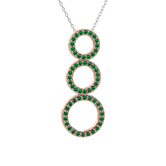 Yeşil kuvars 8 ayar rose altın kolye (40 cm gümüş rolo zincir)