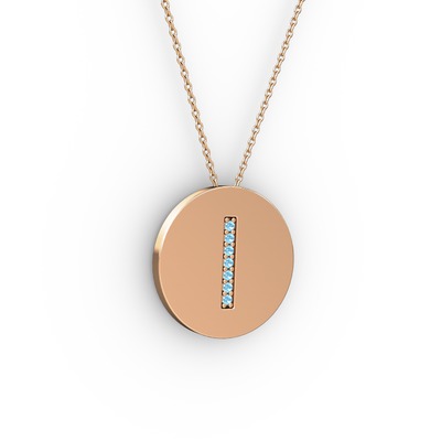 Akuamarin 18 ayar rose altın kolye (40 cm gümüş rolo zincir)