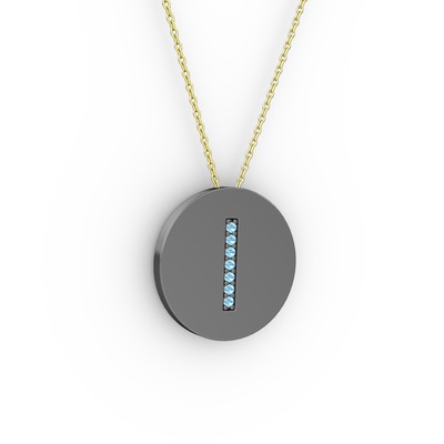 Akuamarin 925 ayar siyah rodyum kaplama gümüş kolye (40 cm altın rolo zincir)