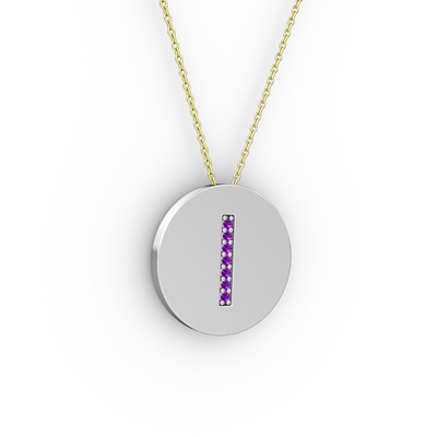 Ametist 14 ayar beyaz altın kolye (40 cm gümüş rolo zincir)