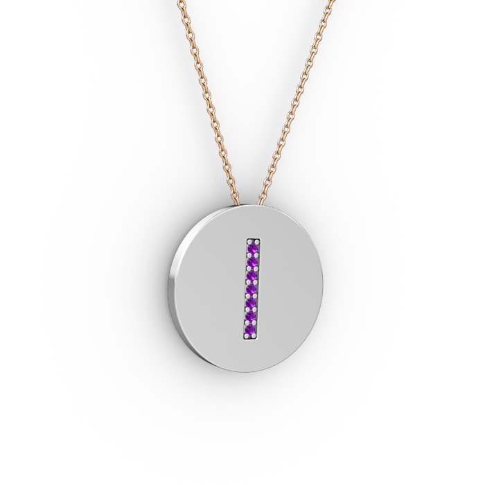 Ametist 8 ayar beyaz altın kolye (40 cm gümüş rolo zincir)
