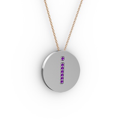 Ametist 925 ayar gümüş kolye (40 cm rose altın rolo zincir)