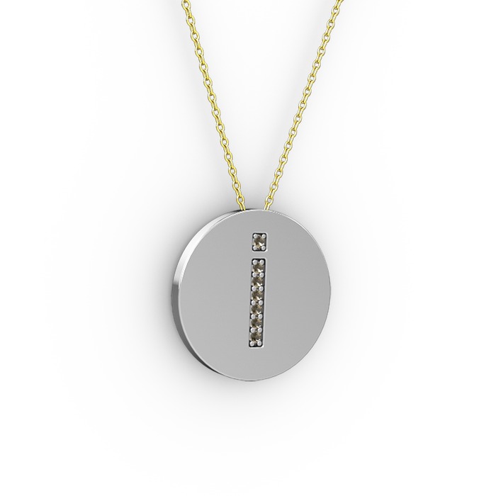Dumanlı kuvars 18 ayar beyaz altın kolye (40 cm altın rolo zincir)