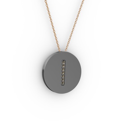 Dumanlı kuvars 925 ayar siyah rodyum kaplama gümüş kolye (40 cm rose altın rolo zincir)
