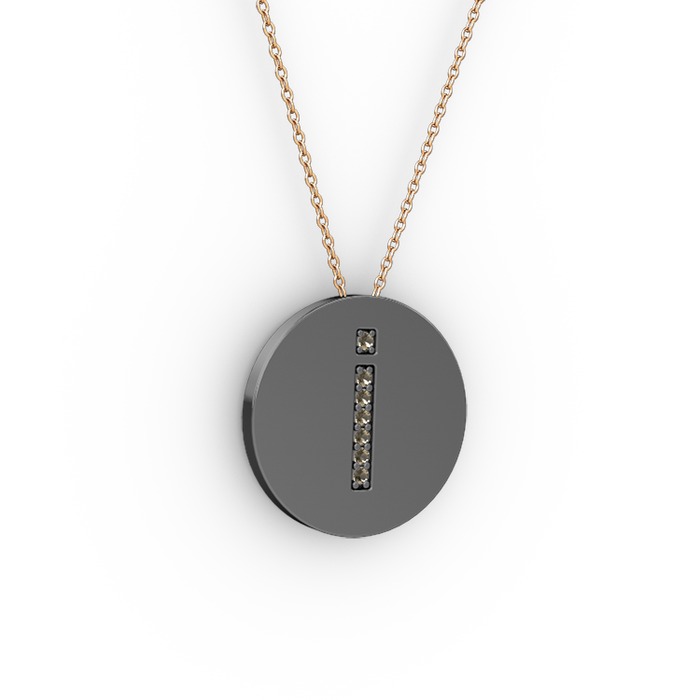 Dumanlı kuvars 925 ayar siyah rodyum kaplama gümüş kolye (40 cm rose altın rolo zincir)
