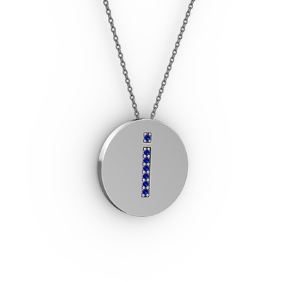Lab safir 14 ayar beyaz altın kolye (40 cm gümüş rolo zincir)