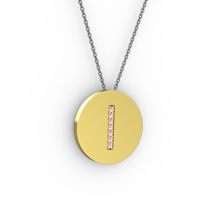 Pembe kuvars 18 ayar altın kolye (40 cm gümüş rolo zincir)