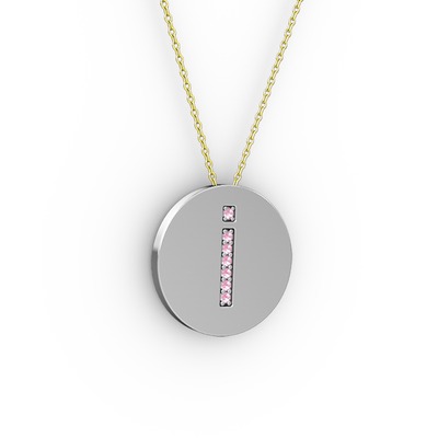 Pembe kuvars 18 ayar beyaz altın kolye (40 cm altın rolo zincir)