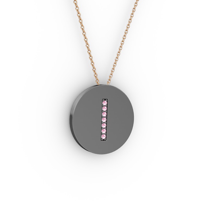 Pembe kuvars 925 ayar siyah rodyum kaplama gümüş kolye (40 cm rose altın rolo zincir)