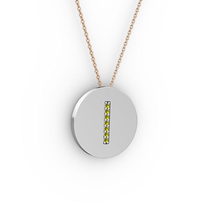 Peridot 14 ayar beyaz altın kolye (40 cm rose altın rolo zincir)