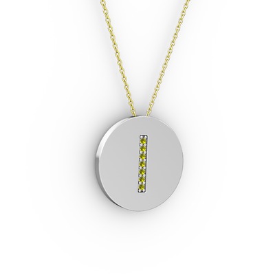Peridot 18 ayar beyaz altın kolye (40 cm altın rolo zincir)