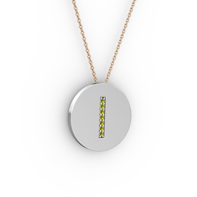 Peridot 18 ayar beyaz altın kolye (40 cm gümüş rolo zincir)