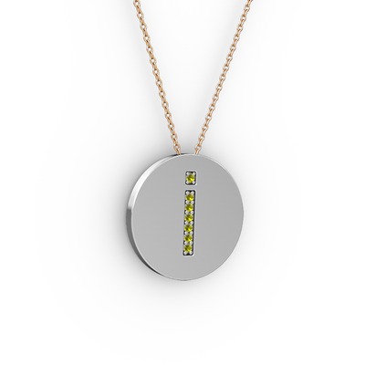 Peridot 18 ayar beyaz altın kolye (40 cm rose altın rolo zincir)
