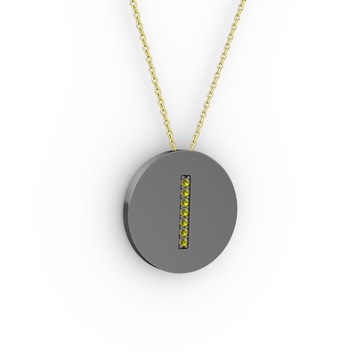 Peridot 925 ayar siyah rodyum kaplama gümüş kolye (40 cm altın rolo zincir)