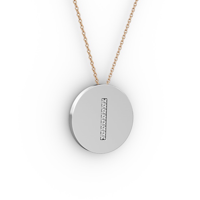Pırlanta 14 ayar beyaz altın kolye (0.0616 karat, 40 cm rose altın rolo zincir)