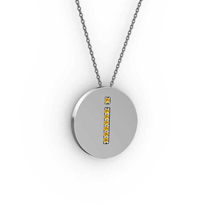 Sitrin 14 ayar beyaz altın kolye (40 cm gümüş rolo zincir)