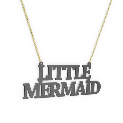 925 ayar siyah rodyum kaplama gümüş kolye (13 karakterli times new roman, 40 cm altın rolo zincir)