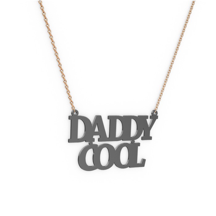 925 ayar siyah rodyum kaplama gümüş kolye (9 karakterli times new roman, 40 cm rose altın rolo zincir)