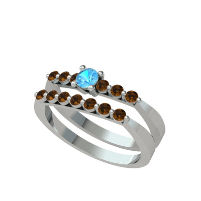 Akuamarin ve dumanlı kuvars 14 ayar beyaz altın yüzük